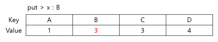 - map.put() : Key와 Value 값을 HashMap에 넣는다. 만약 키 값이 없으면 생성한다.