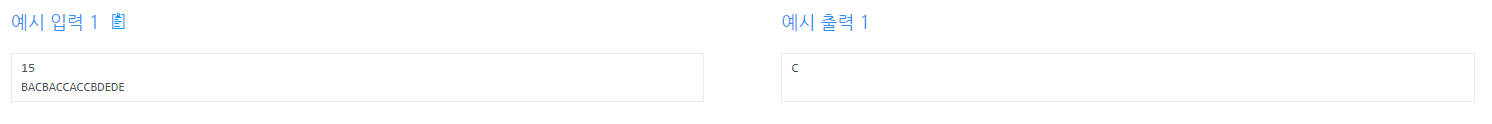- 두 번째 줄에 N개의 투표용지에 쓰여져 있던 각 후보의 기호가 선생님이 발표한 순서대로 문자열로 입력됩니다.