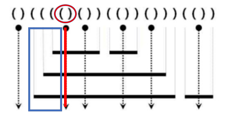 - 이러한 레이저와 쇠막대기의 배치는 다음과 같이 괄호를 이용하여 왼쪽부터 순서대로 표현할 수 있다.