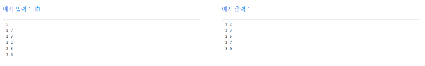 - 정렬기준은 먼저 x값의 의해서 정렬하고, x값이 같을 경우 y값에 의해 정렬합니다.