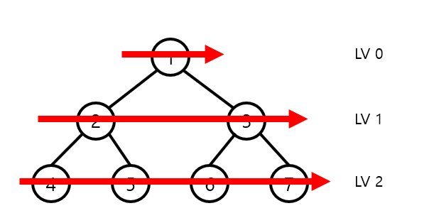 - 레벨 탐색 순회 출력 : 1 2 3 4 5 6 7
