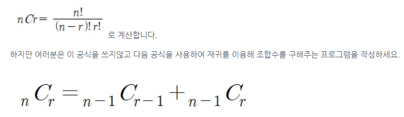 - 첫째 줄에 자연수 n(3<=n<=33)과 r(0<=r<=n)이 입력됩니다.