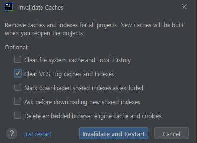 2. Clear VCS Log caches and indexes > Invalidate and Restart