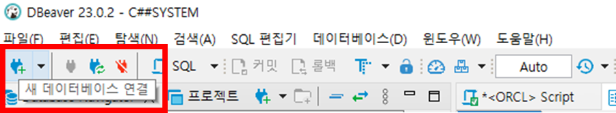 1) 설치한 DBeaver 를 실행시킨 후, 아래 버튼을 눌러서 새 데이터베이스 연결을 시작한다.