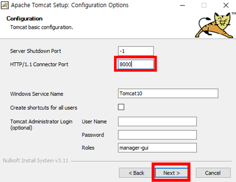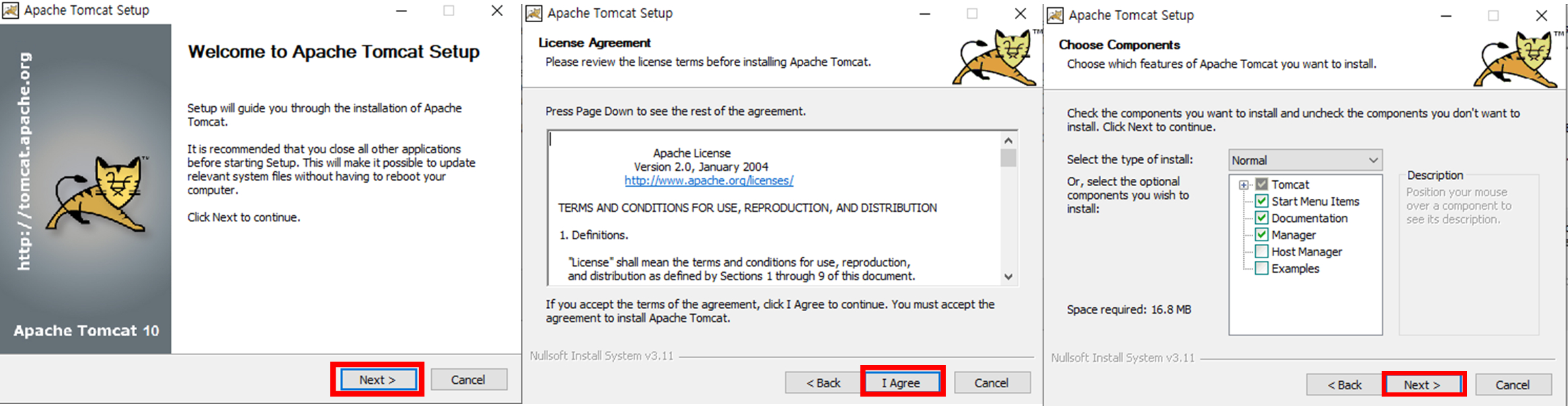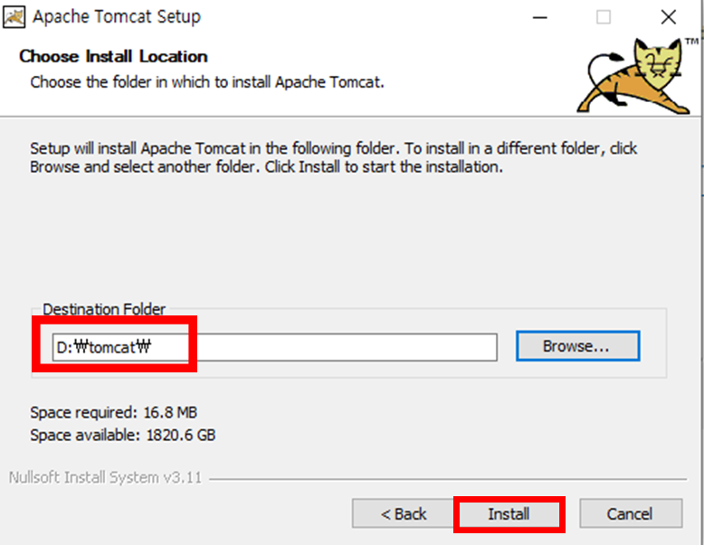 다운받은 파일을 실행시켜서 톰캣을 설치합니다.
