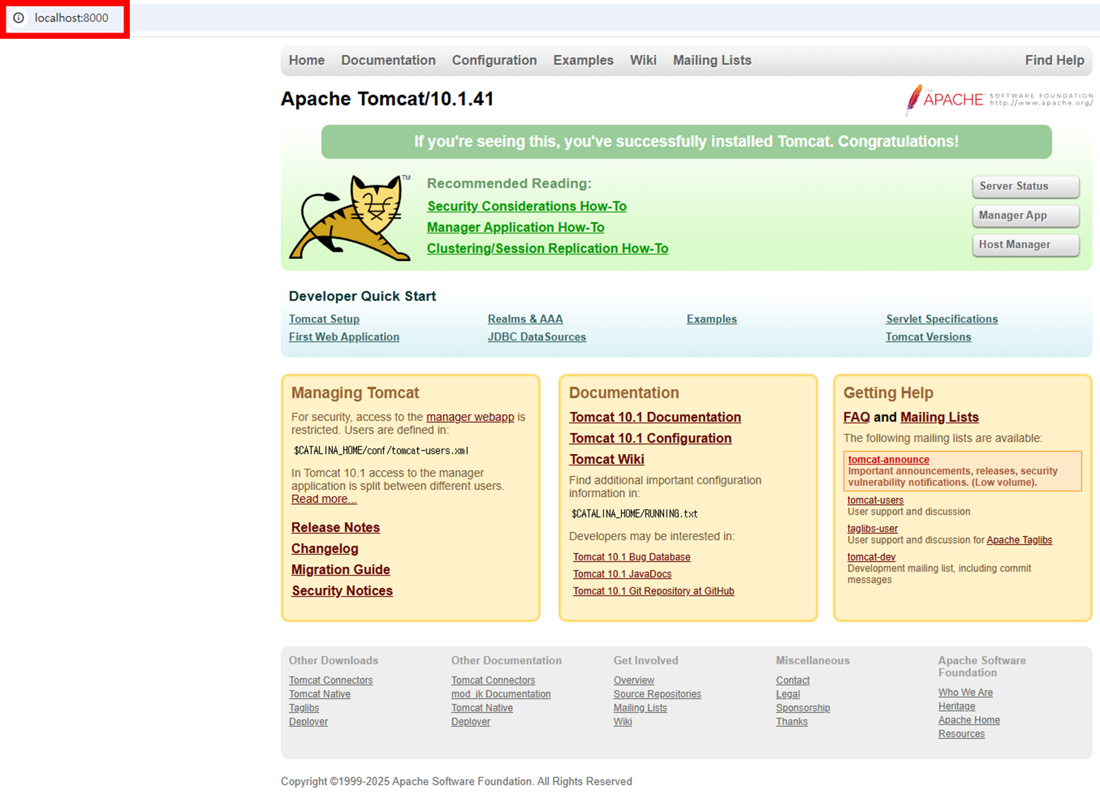 아래처럼 Apache Tomcat 화면이 나오면 성공입니다.