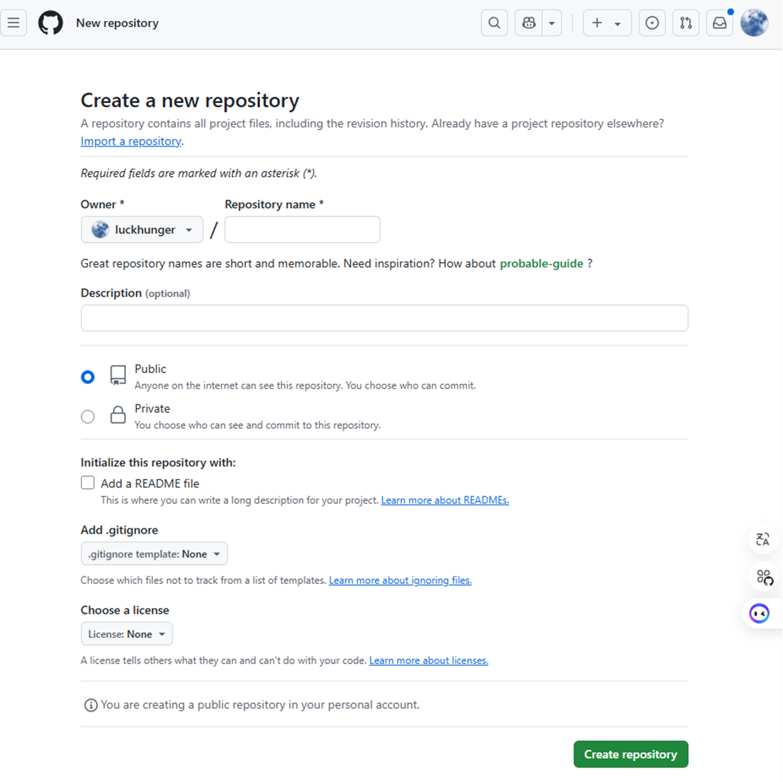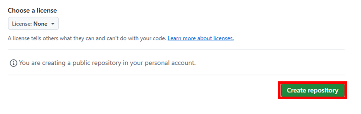 위 사항들을 참고해서 입력한 후에 밑의 Create repository 버튼을 클릭합니다.