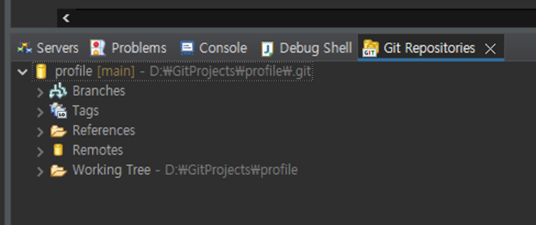 조금 기다리면 하단의 Git Repositories 가 아래처럼 변할겁니다.