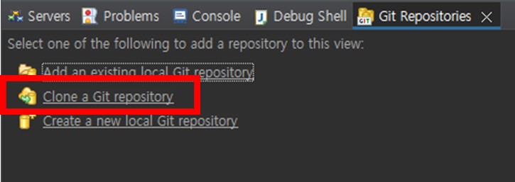 하단의 Git Repositories에서 Clone a Git repository 를 눌러주세요.