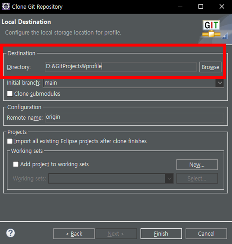 - 이클립스에서 이미 프로젝트를 만든 뒤 GitHub에 연동하는 경우, 충돌할 가능성이 있기에 추천하지 않음