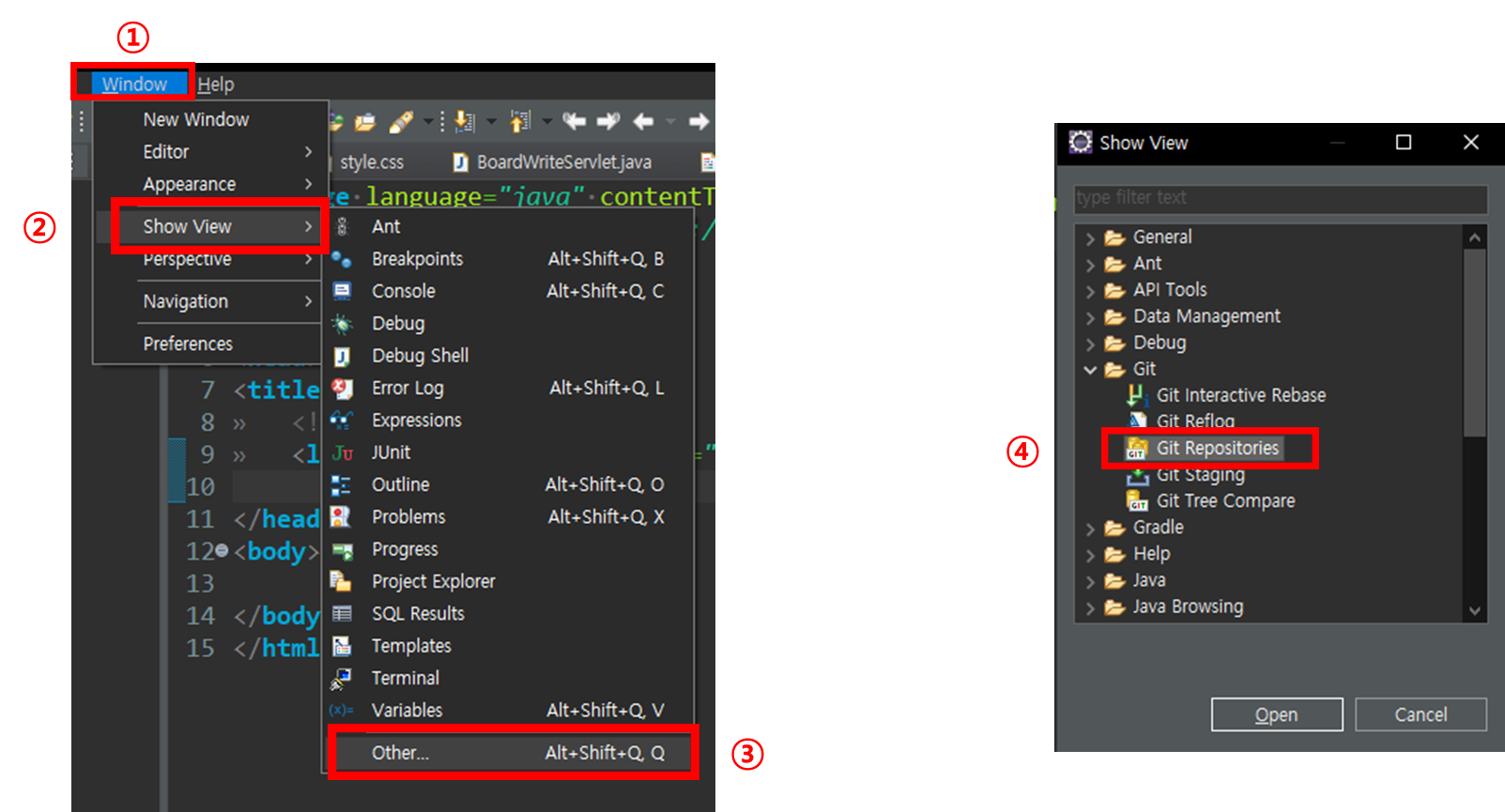 1. 이클립스에서 Git 뷰 열기