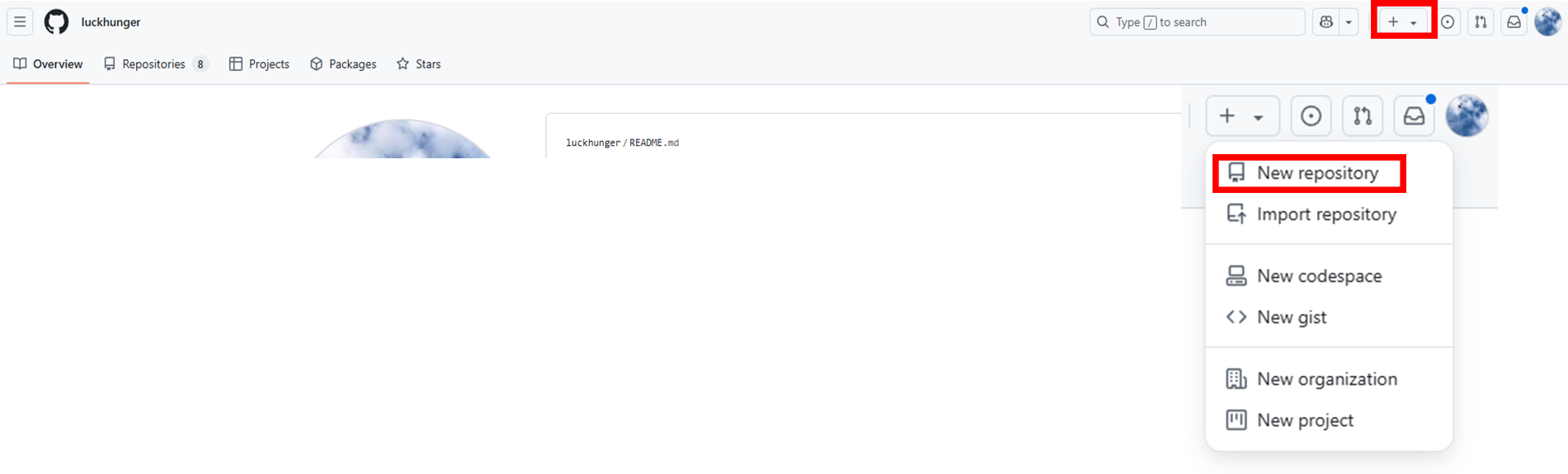 그걸 누르면 나오는 목록들 중에 New repository 를 눌러주세요.