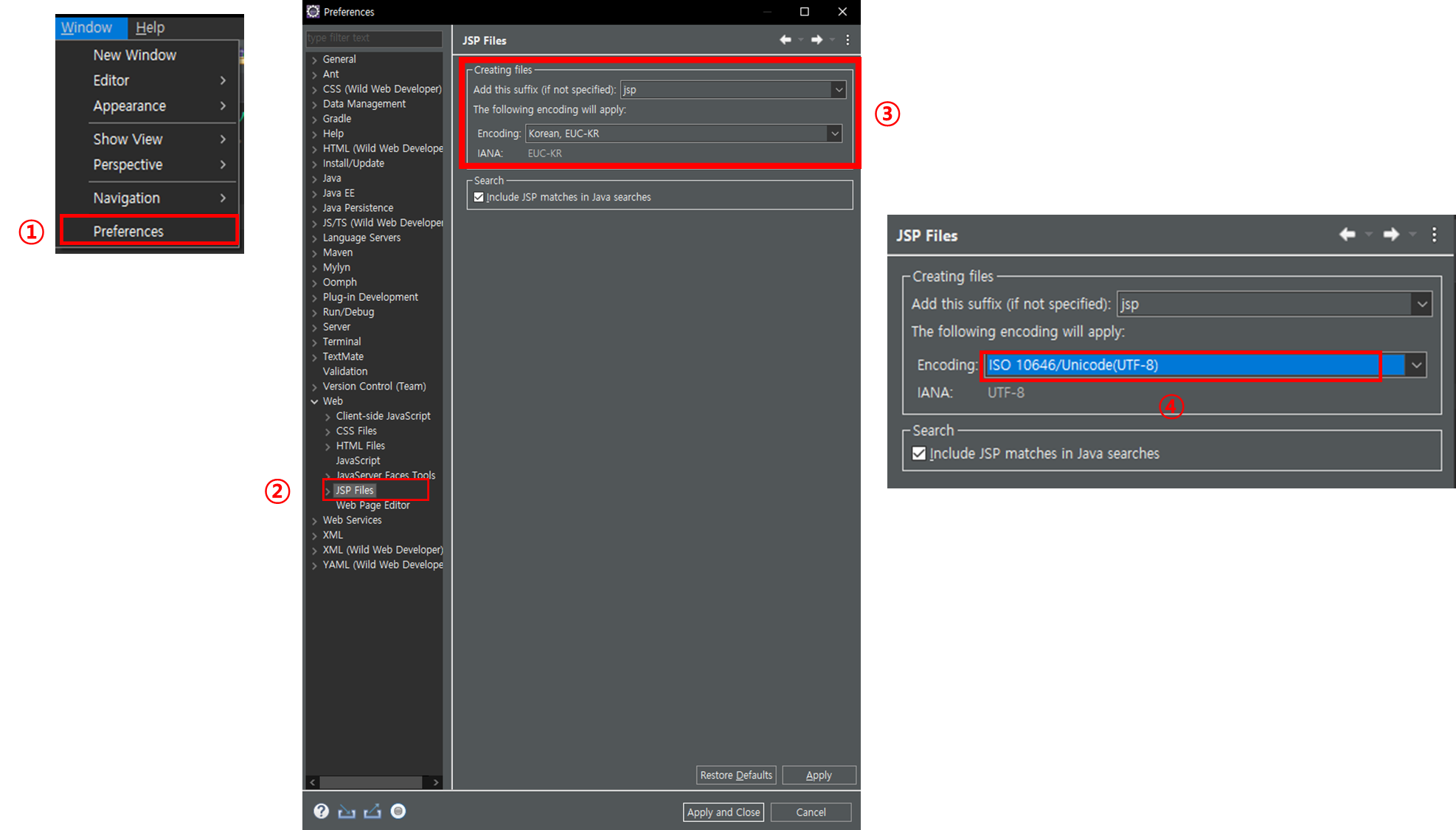 그러니, 귀찮음을 줄이기 위해 이클립스 내의 설정으로 인코딩이 자동으로 변경되게 하겠습니다.