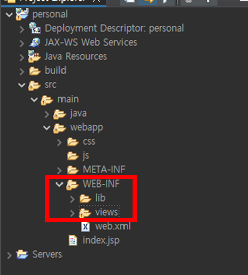 WEB-INF 폴더 안에 views 폴더를 생성하겠습니다.