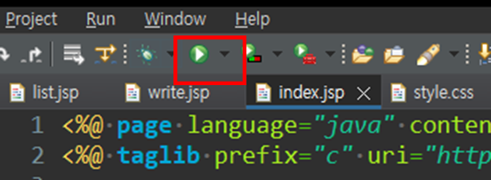 index.jsp 에서 상단의 실행 아이콘을 눌러 화면을 열겠습니다.