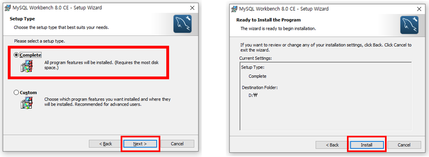 Complete 옵션을 선택하고 Next 를 눌러서 넘어갑니다.