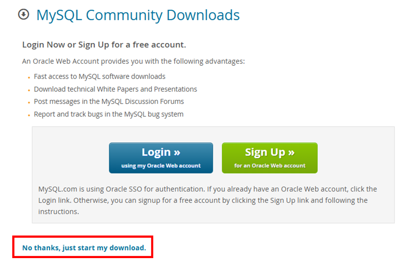 로그인 하라는 화면이 뜨지만, 무시하고 아래쪽의 No Thanks, just start my download. 를 눌러줍니다.