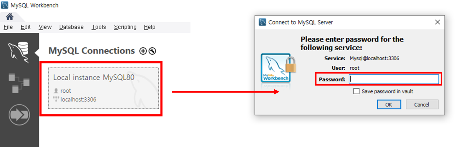 비밀번호를 입력하라는 창이 뜨면 본인의 MySQL 계정 비밀번호를 입력해줍니다.