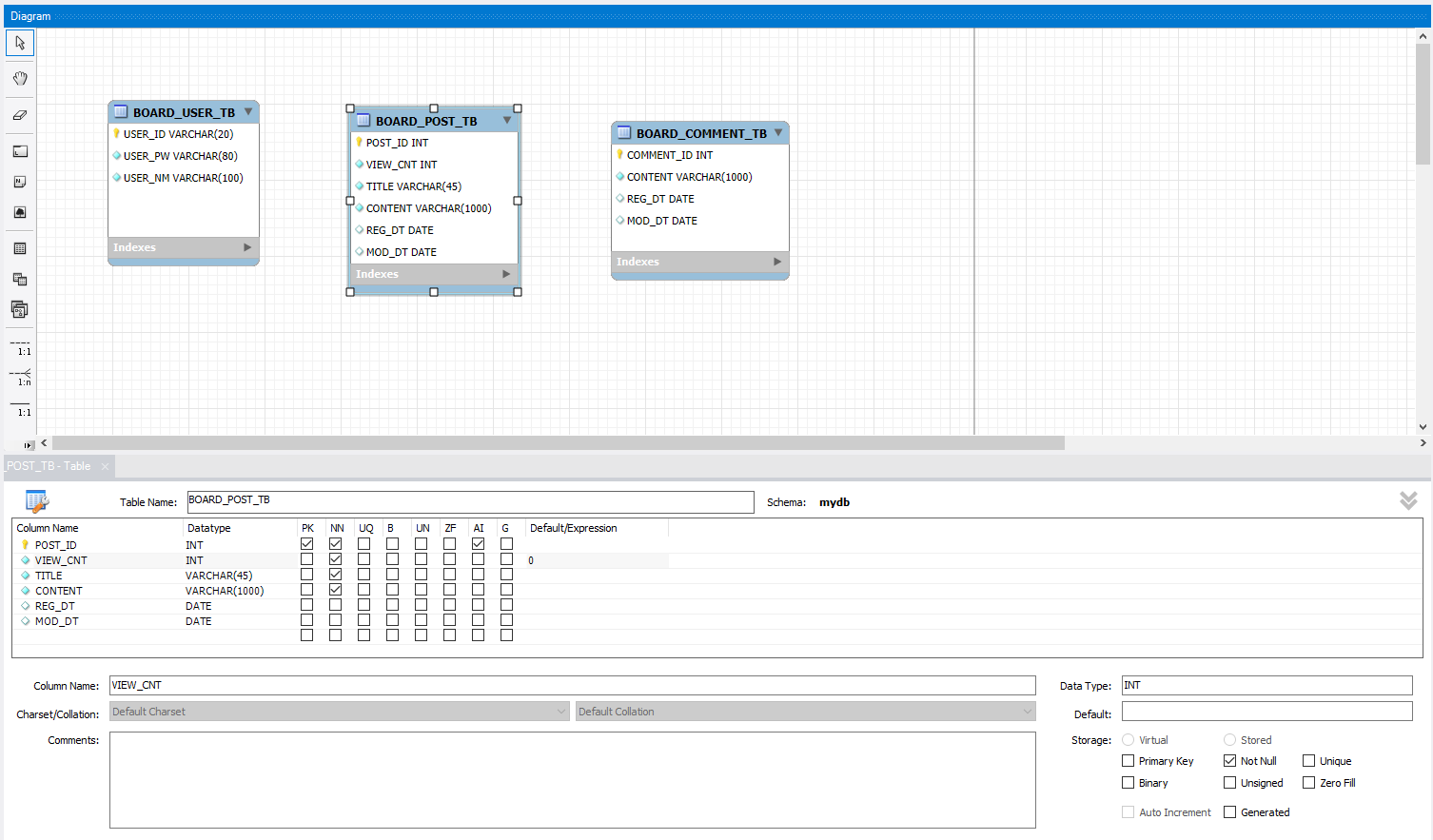 해당 아이콘을 클릭하고, 먼저 게시글 테이블 (BOARD_POST_TB)을 선택합니다.