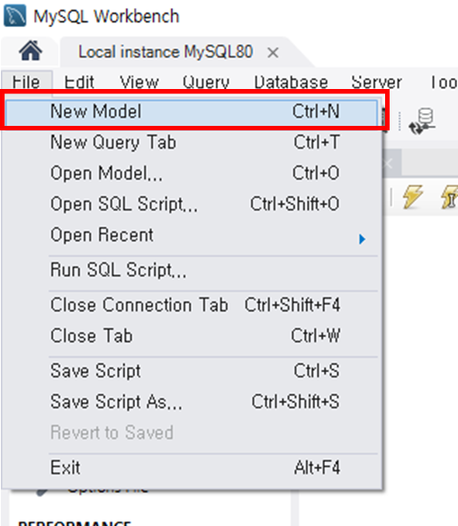 왼쪽 상단 메뉴에서 File > New Model 을 클릭합니다.