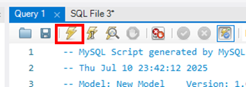 복사한 쿼리는 나중에 MySQL Workbench 쿼리 창에 붙여넣어 실행할 수 있습니다.