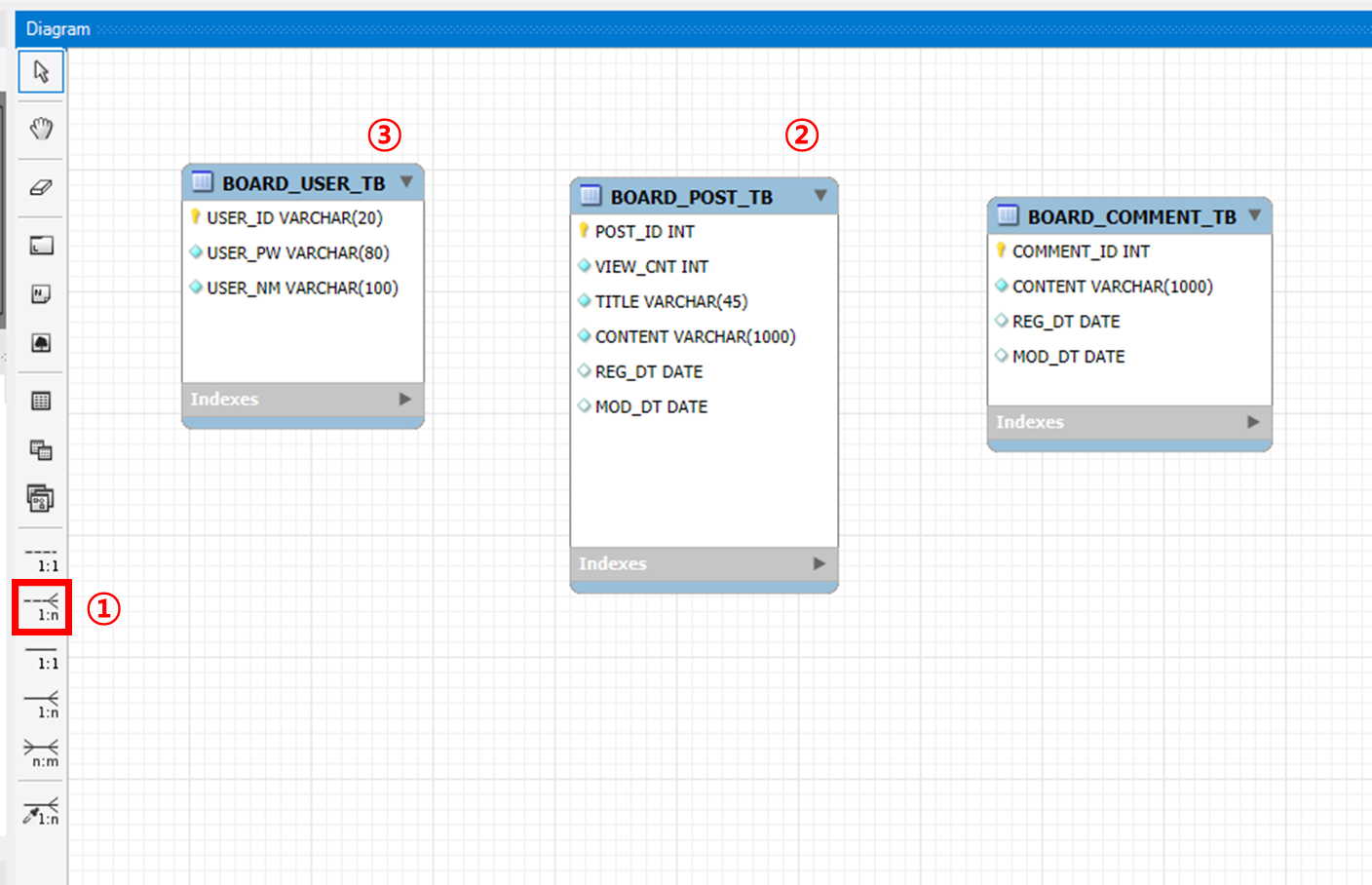 이번에는 BOARD_USER_TB와 BOARD_POST_TB 사이에 외래 키 관계를 설정해보겠습니다.