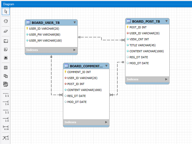 목차1. 프로젝트 개요2. ERD 모델링 및 테이블 설계 2-1. 새 모델 생성 및 다이어그램 추가 2-2. 테이블 추가 및 컬럼 정의 - 사용자 테이블 (BOARD_USER_TB) - 게시글 테이블 (BOARD_POST_TB) - 댓글 테이블 (BOAR