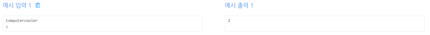- 첫 줄에 문자열이 주어지고, 두 번째 줄에 문자가 주어진다.