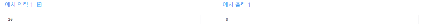 - 만약 20이 입력되면 1부터 20까지의 소수는 2, 3, 5, 7, 11, 13, 17, 19로 총 8개입니다.