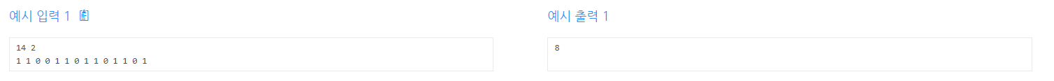 - 두 번째 줄에 N길이의 0과 1로 구성된 수열이 주어집니다.