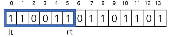 6. (rt-lt)+1 식을 통해서 for문이 돌 때마다 연속된 1의 길이를 구한다.